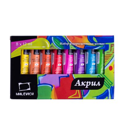 Краски акрил. 08цв. Малевичъ, 12мл флуор. 612005
