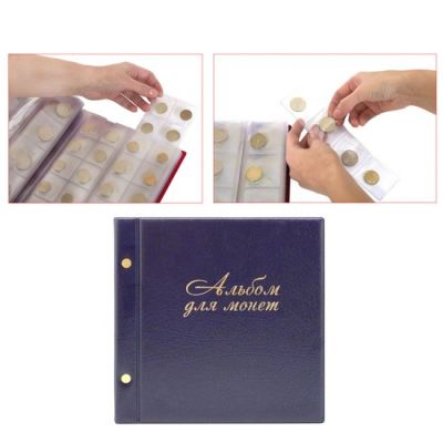 Альбом для монет на 216 монет, 3 файла для купюр, синий 2855-201