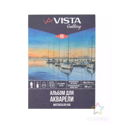 Альбом для акварели А4 12л. Vista-Artista, 300гм2, среднее зерно WCPP-A4