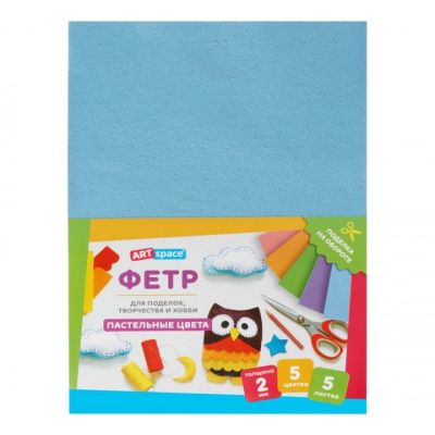 Цв. фетр А4 05л. 05цв. ArtSpace 2мм, пастель Фц5_38034