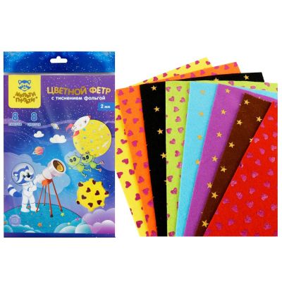 Цв. фетр А4 08л. 08цв. Енот в космосе, 2мм, с тисн. фольгой ФЦ8ф_38697